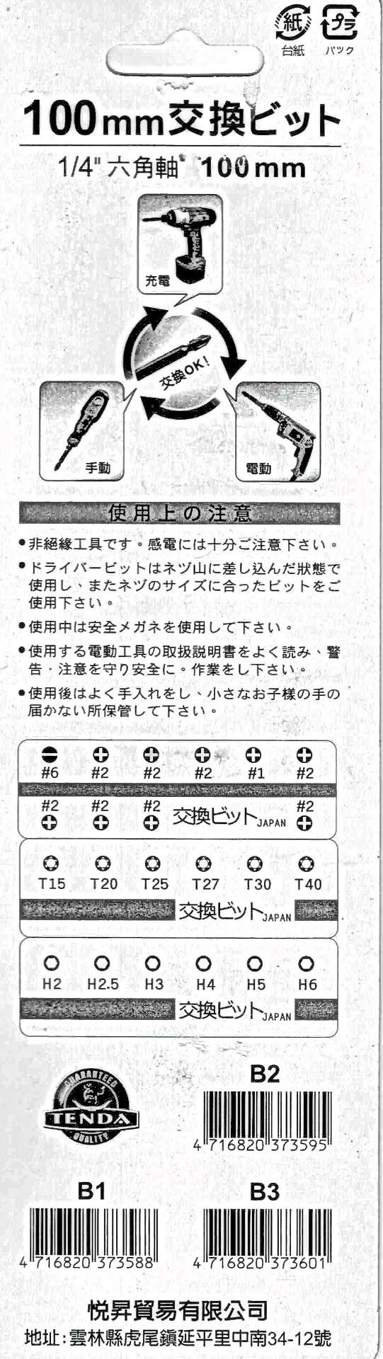 B3→1/4"六角起子頭 (H2~H6)
